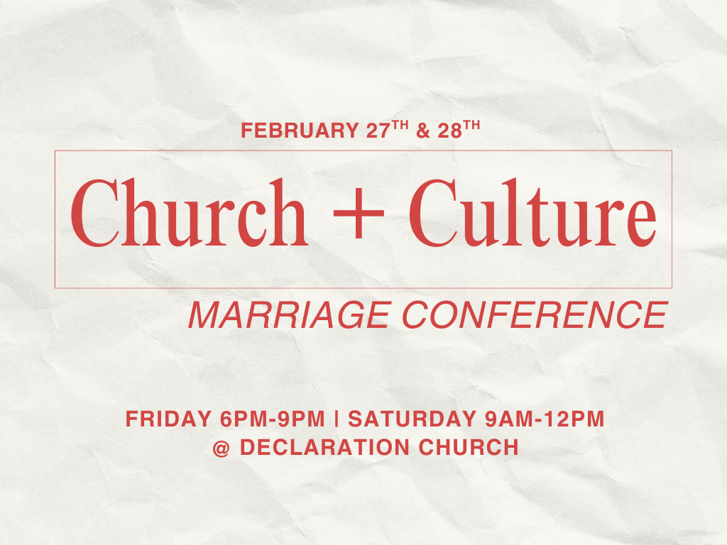We are so excited for this Church + Culture event, Marriage Conference! Our hope is that this would be a time of encouragement and growth for those in our church that are married or desire to one day be married/remarried.
